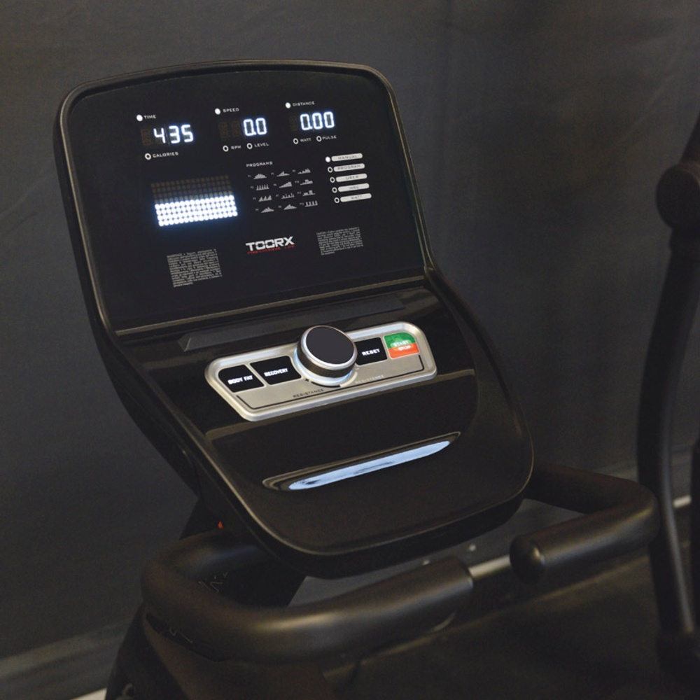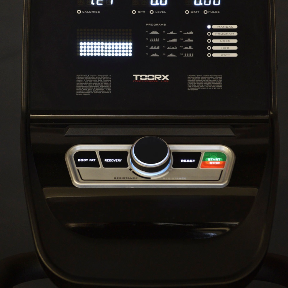 | Informationen | Zeit, Geschwindigkeit, Entfernung, Kalorien, Puls, Drehzahl, Watt – Trainingsprogramme: 1 freies, 12 voreingestellte, 4 benutzerdefinierte, HRC, Watt, Erholung, Körperfettmesser |
